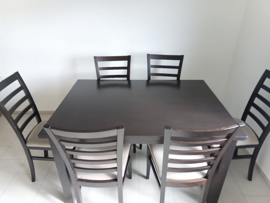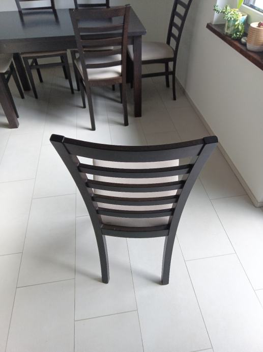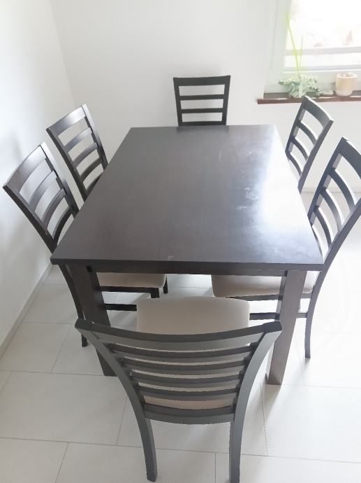 Masivna jedilna miza 130*90, temna rjava barva. 6 * stoli.