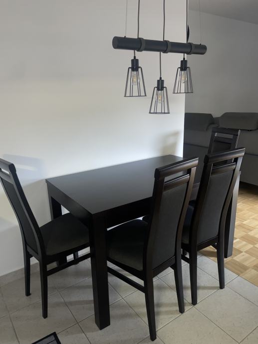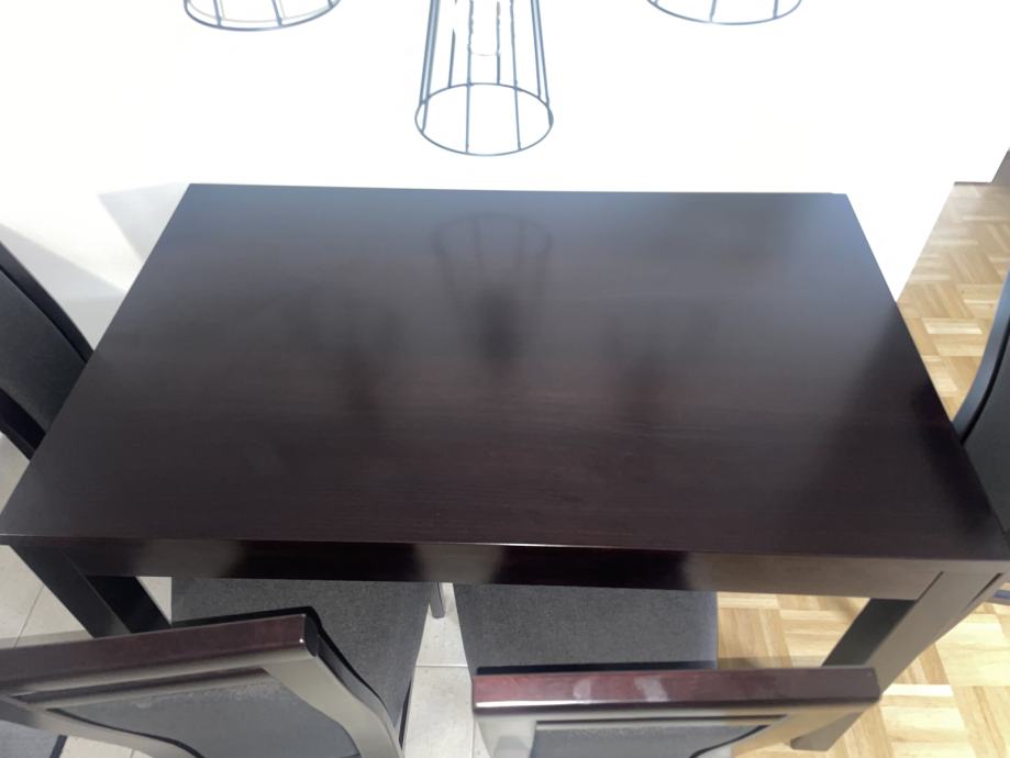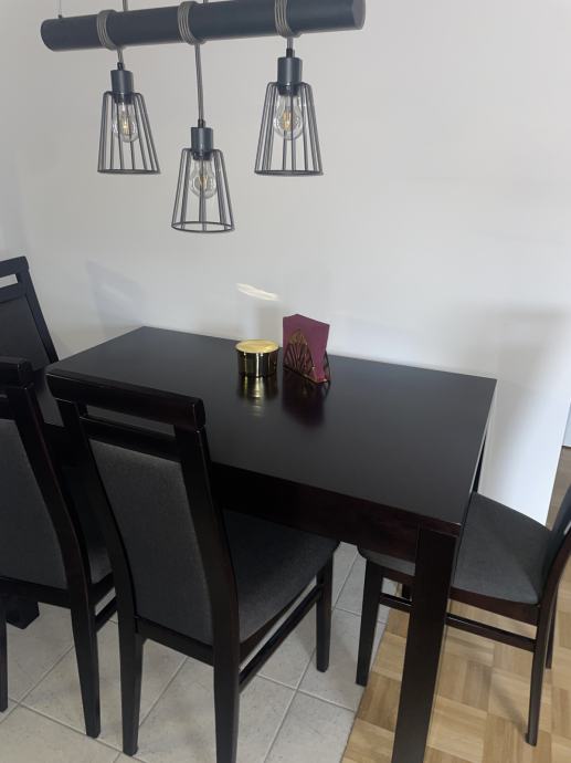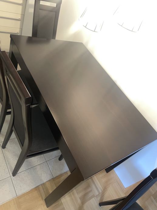 Prodam, malo rabljeno, 1 leto staro kakovstno jedilno mizo z stoli (4krat) -temen hrast- Murales.