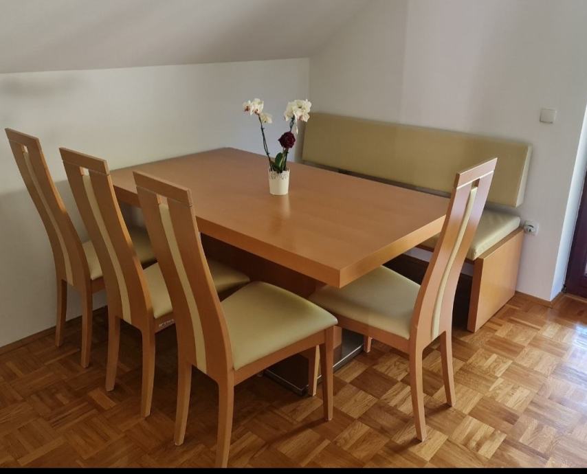 Prodamo malo rabljeno masivno mizo z klopjo in 4 stoli MURALES.