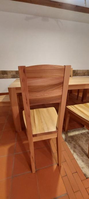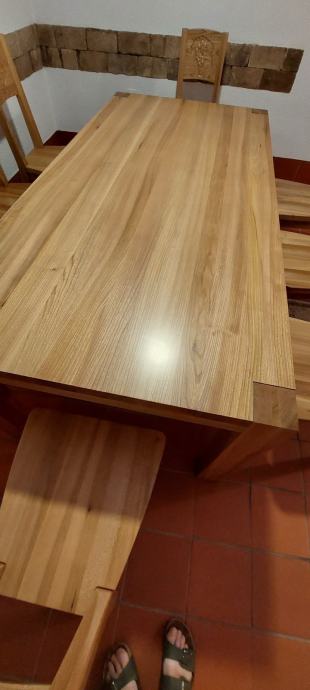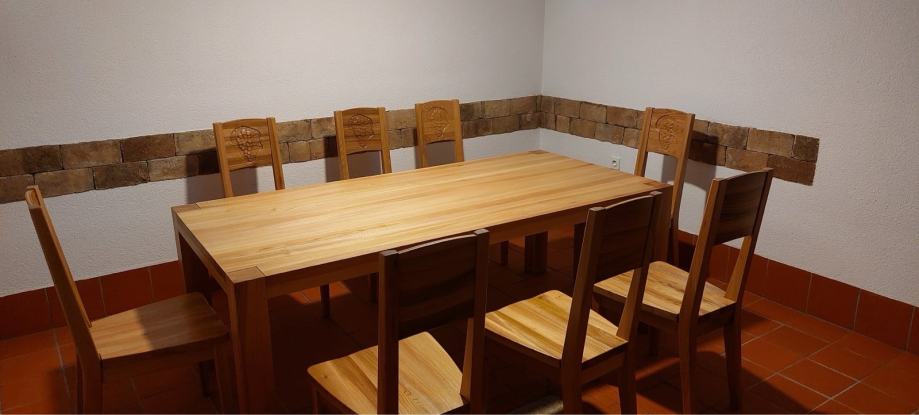 Prodajam vrhunski in unikaten jedilni komplet iz masivnega jesenovega lesa in sicer: mizo dim. 100 x 220 cm in 8 stolov z reljefnim hrbtiščem. Izdelal ga je poznani in cenjeni mizar Makovec iz Komna, ki sicer med drugim opremlja najbogatejše jahte, križarke in svetovno znane restavracije, kot je kultna restavracija Delmonico v samem centru New Yorka. (- v bližini te znane restavracije so snemali filme o Johnu Wicku- hotel Continental.)