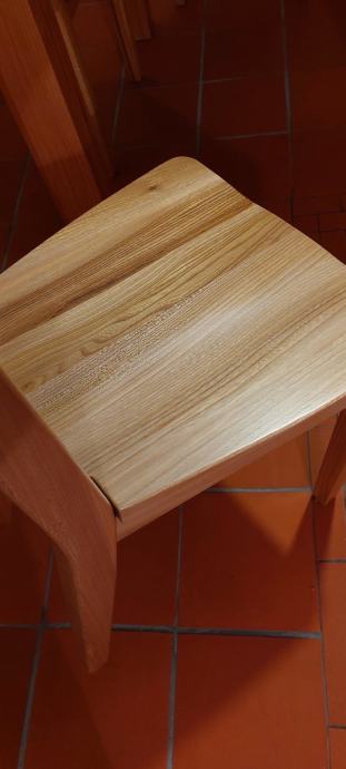 Oprema je v vrhunskem stanju, ker praktično ni bila uporabljena. Izdelek je lakiran s prozornim lakom, zato je na nekaterih stolih opaziti tanek površinski ris, odrgnina, ki pa skoraj ni opazna. Miza je brez poškodb, kot nova.
