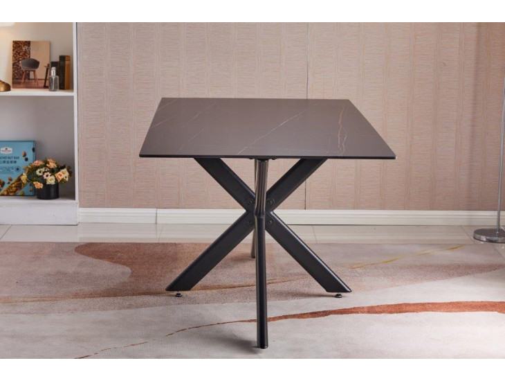 Kuhinjska jedilna miza ALEN je moderna miza v kombinaciji črnih kovinskih nog s marmor mizno ploščo, narejeno iz keramične plošče debeline 12 mm.