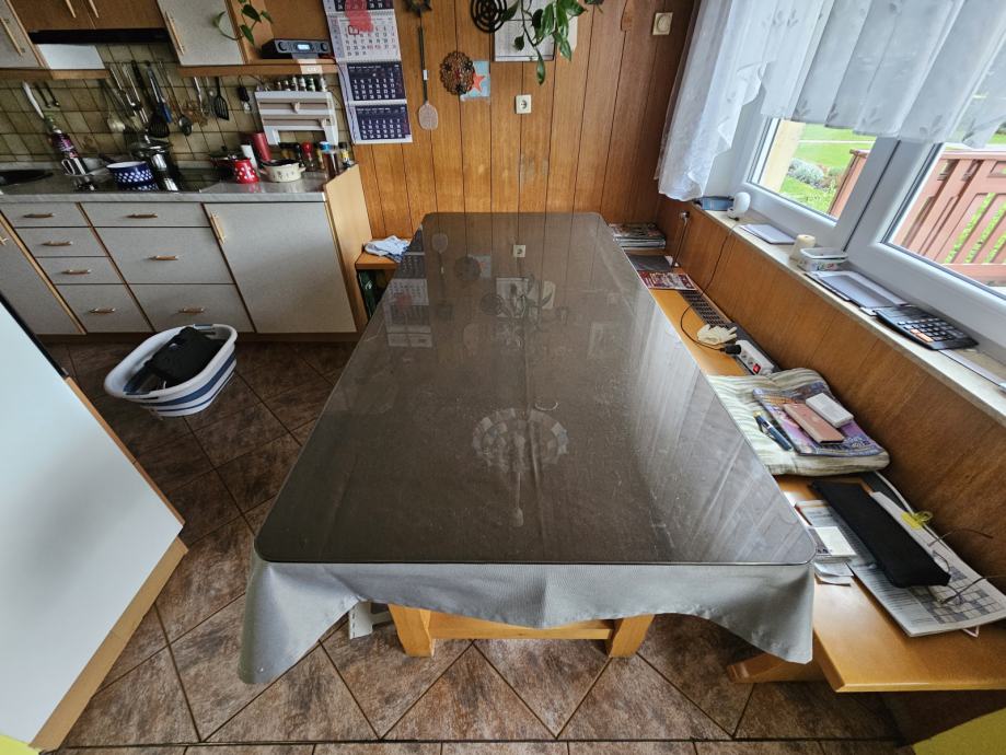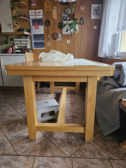 Prodamo lepo ohranjeno kuhinjsko mizo mere 180x84 če se raztegne dobite še cca 30 cm!Miza ima tudi kaljeno steklo!
