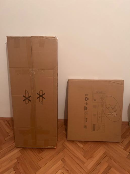 Sestavni deli mize so v originalni embalazi, razen zgornje plosce (slednja je bila vzeta iz embalaze zaradi lazjega transporta).