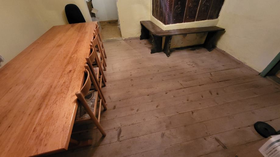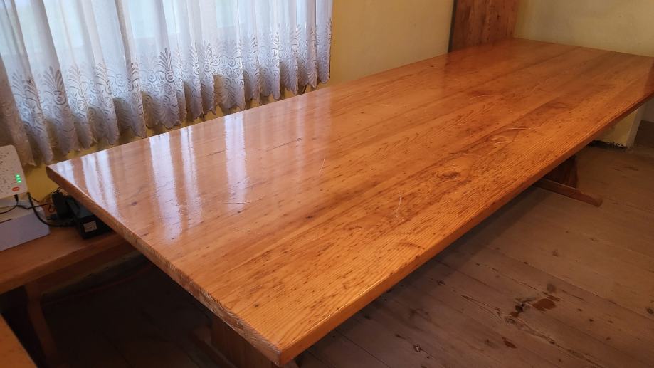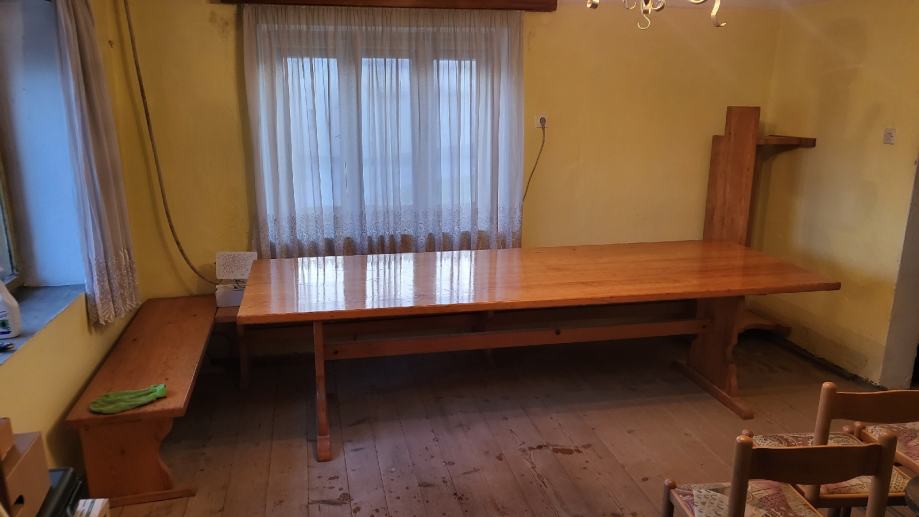 Z pripadajočimi klopmi in 5 masivnimi stoli. Dve stranski klopi širine 41cm in ena dolga klop dolžine 320cm.