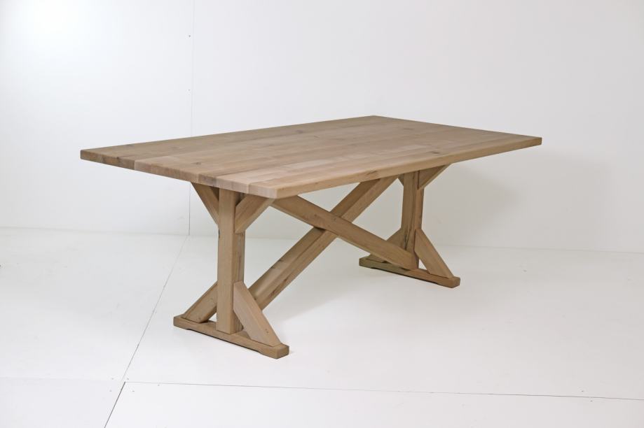 Prodam jedilno mizo narejeno iz rustik hrasta in pokitano s črnim kitom. Elementi so povezani s čepi in grebenasto vezjo. Mizo je možno naoliti ali polakirati. Po želji je možna tudi izdelava klopi.