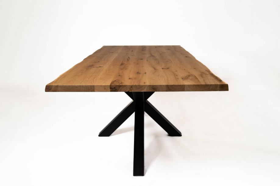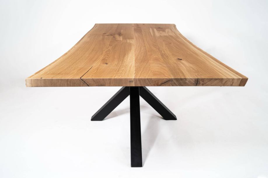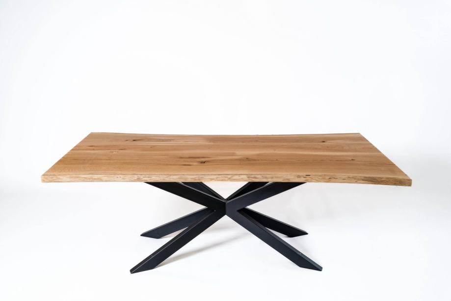 Izdelujemo hrastove masivne jedilne mize. Trenutno najbolj popularna kombinacija je hrast rustik širinsko lepljena plošča, rahlo krtačena in lakirana z natur mat lakom. Praktična, enostavna za čiščenje in predvsem zelo lepa. Kombinirate jo lahko s kvalitetnimi kovinskimi podnožji različnih modelov.