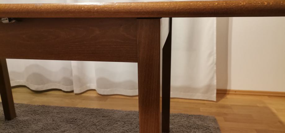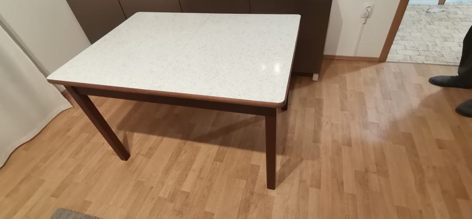 Kvalitetna jedilna miza iz masivnega lesa ročno narejena. D 120 X Š 85 cm. Rastegnjena D 160 X Š