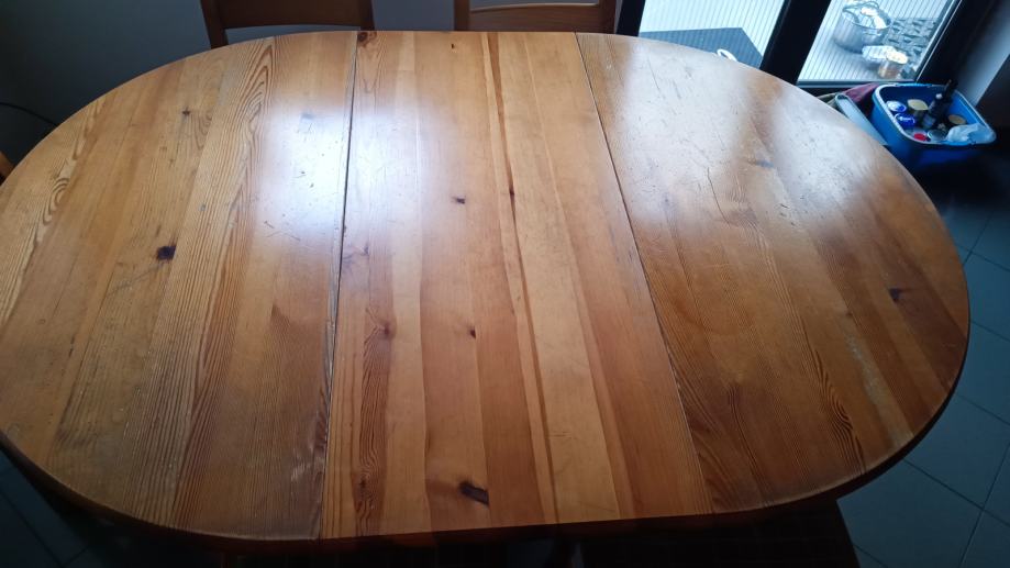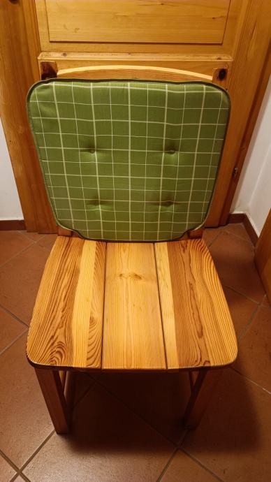 Prodam masivno kuhinjsko leseno mizo s šestimi stoli z blazinami.
