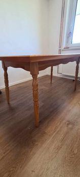 Prodam skoraj nič rabljeno masivno leseno mizo skupaj s stoli iz enakega lesa. Možen je tudi ločen nakup. Miza je lakirana in lepo ohranjena, uporabljena le nekajkrat.