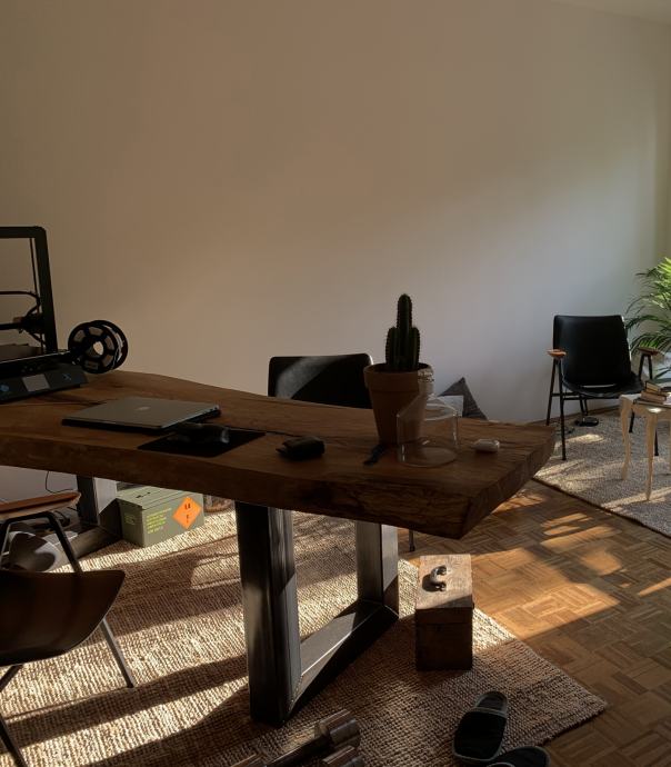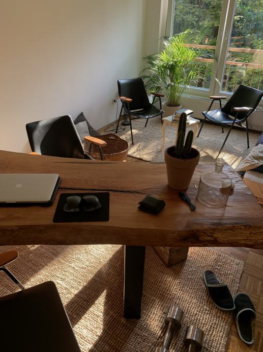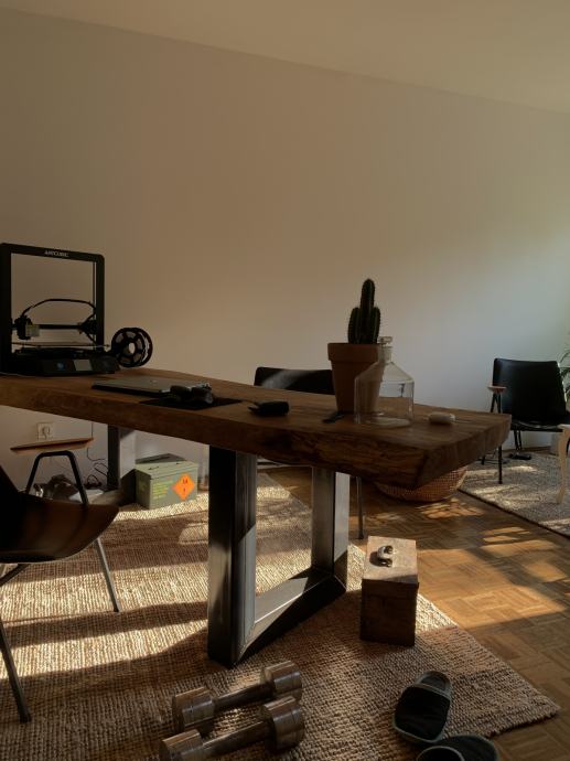Prodam odlično ohranjeno masivno mizo iz oljenega jesenovega lesa in lakiranega kovinskega podnožja.