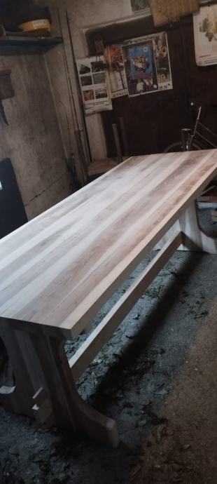 Masivna ročno izdelana miza iz bresta – 180 cm / 220 cm (3 kosi)