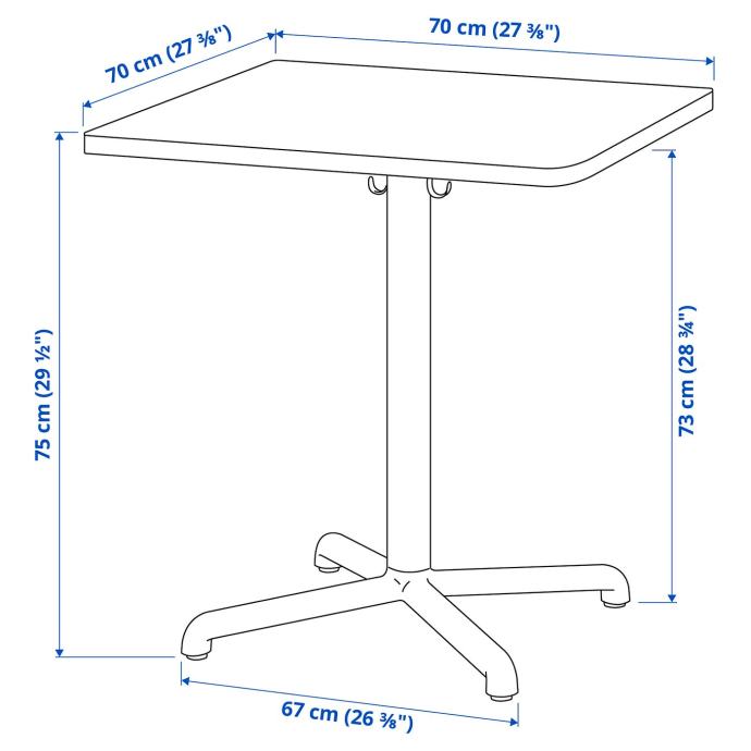 Mere mize zo 70x70 cm, višina je cca 75 cm.