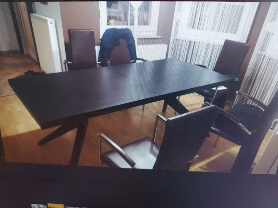 Prodam Novo jedilno Mizo Črno Na Odpiranje 200 x 90 plus 2 x 45 uložek