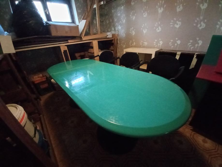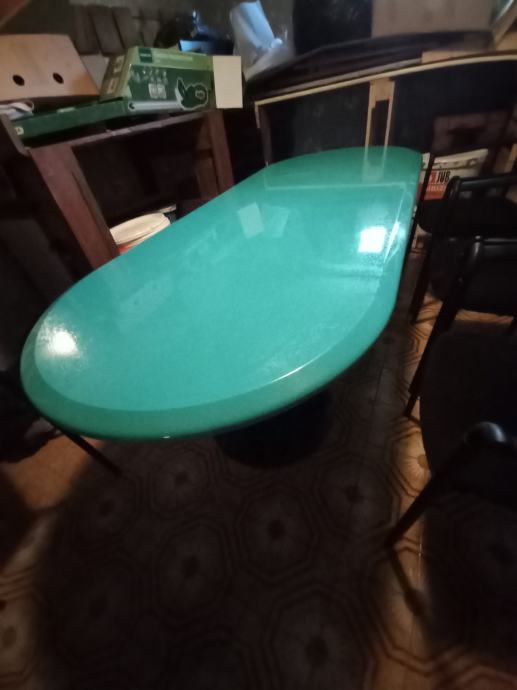 Prodam atraktivno mizo za jedilnico, ovalne oblike. Miza je posebne turkizne barve in privlačnega videza. Odlično se lahko vključi v moderno stanovanje, v jedilnico s stenami svetlih barv.