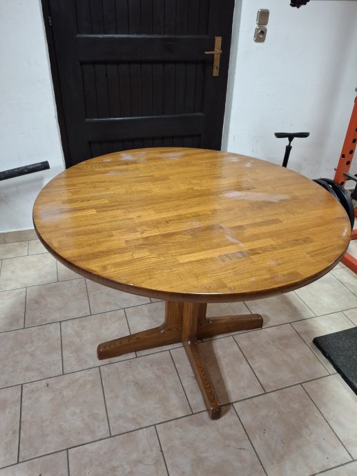 Prodam okroglo mizo iz masivnega lesa. Premer mize je 107 cm.