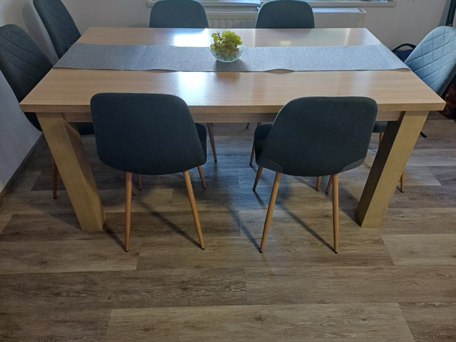 Prodam rabljeno jedilno mizo, beljeni hrast, mere 160x90, višina 75cm, cena 70evr, stoli niso vključeni v ceno.
