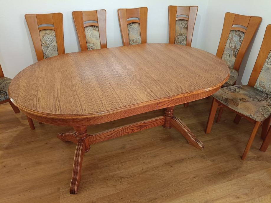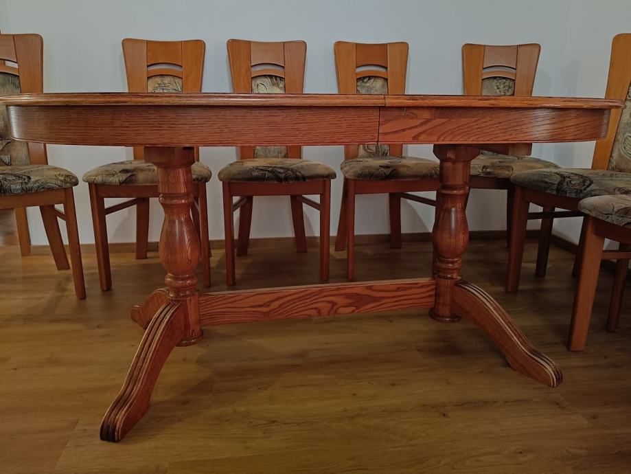 Prodam zelo dobro ohranjeno raztegljivo jedilno mizo in 8 stolov.