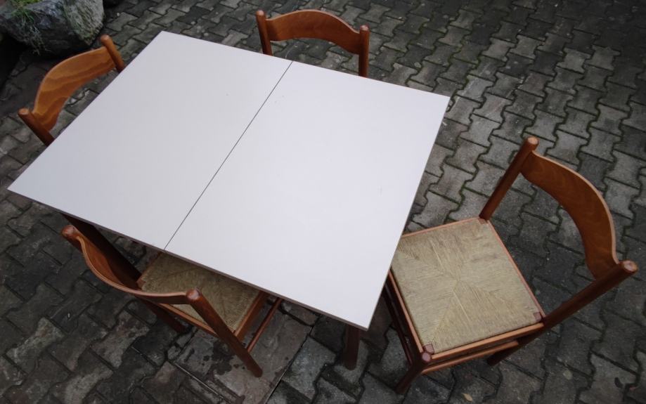 Prodam raztegljivo leseno jedilniško mizo s štirimi pripadajočimi stoli,