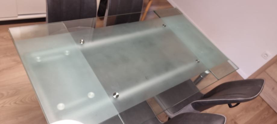 Prodamo raztegljivo stekleno jedilno mizo dolžine 140 (200) cm, širine 80 cm in višine 76 cm.