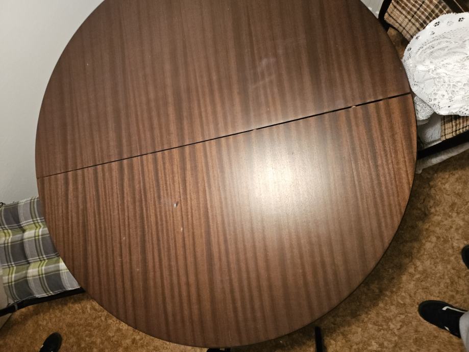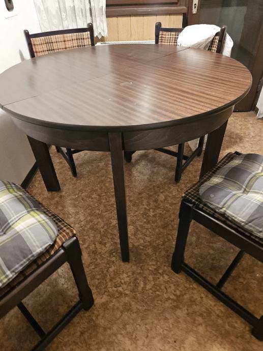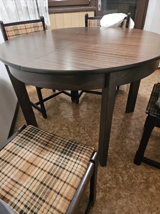 Prodam dobro ohranjeno jedilno mizo. Retro izgled, je raztegljiva. Ima manjšo poškodbo na površini ploskve, se vidi na sliki. Zraven so lahko tudi stoli.