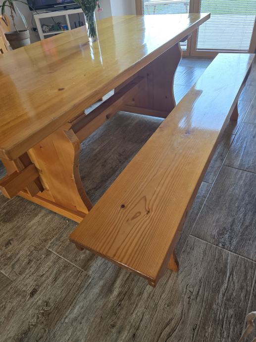 Cena mize 550 eur, klop po 75 eur. Če vzamete komplet mizo in obe klopi, pride 650 eur.