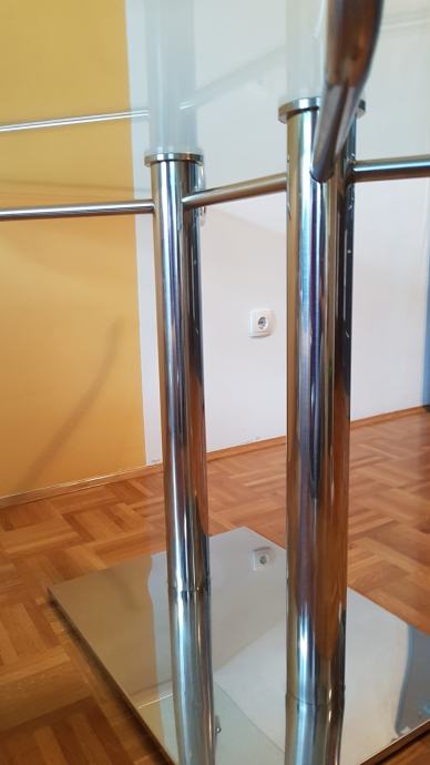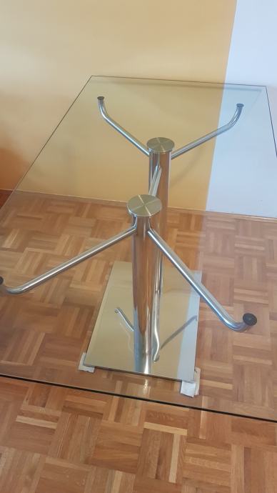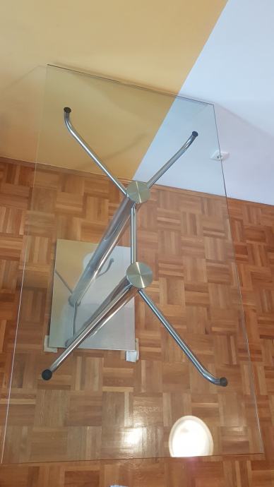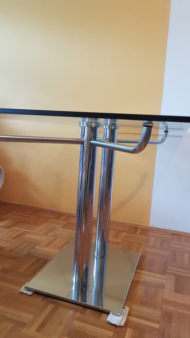 Prodam stekleno jedilno mizo s kromiranimi nogami in podstavkom. Miza je lepo ohranjena in stabilna.