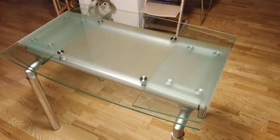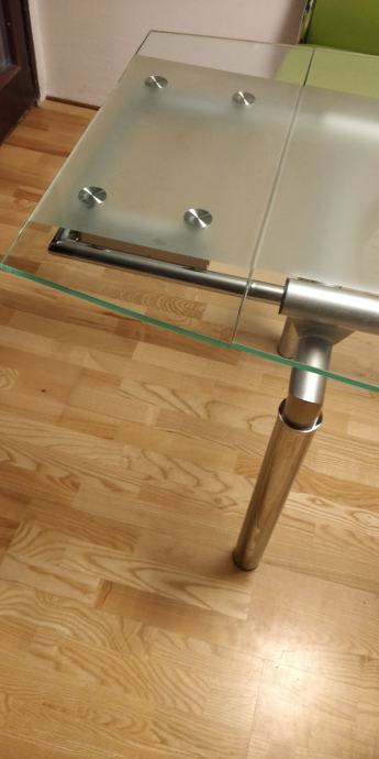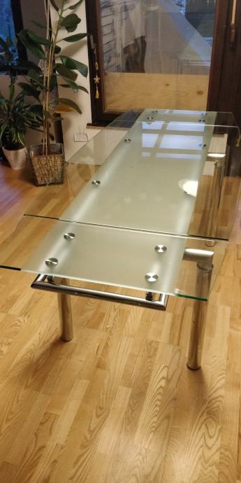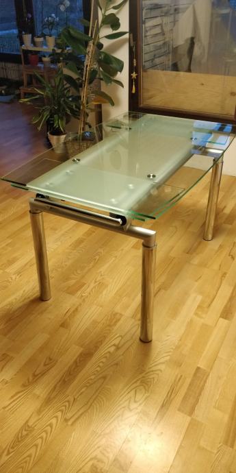 Prodamo raztegljivo jedilno mizo, kaljeno steklo z INOX ogrodjem - noge.