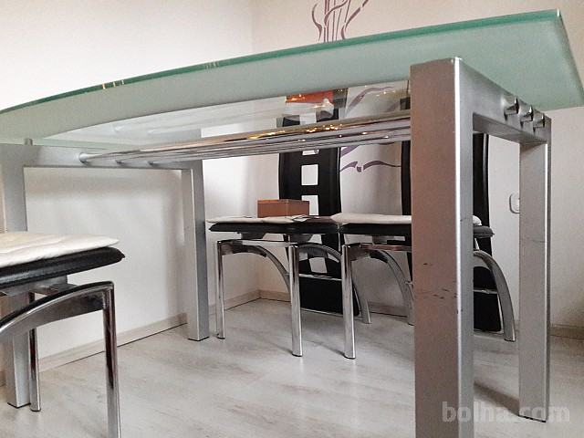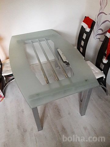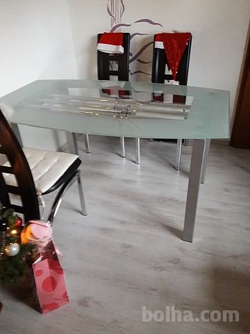 Steklena jedilna miza dimenzije 95x105 ima kovinske noge je zelo mocna in stabilna.