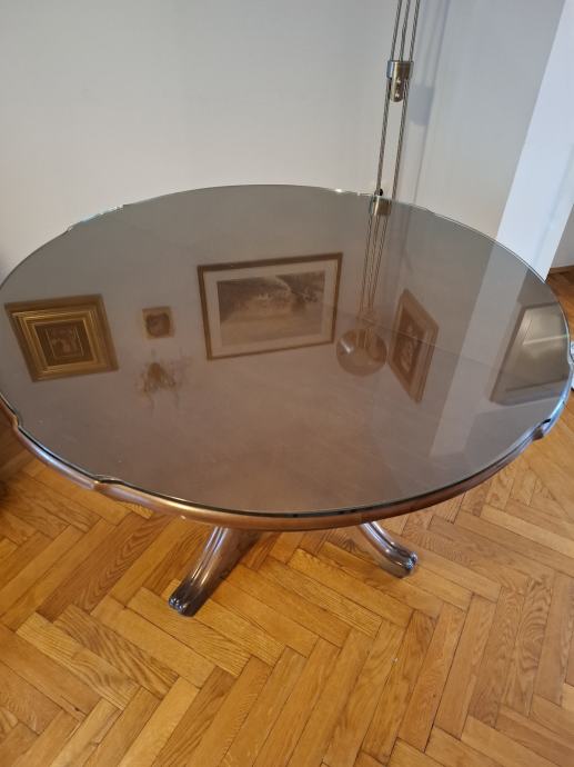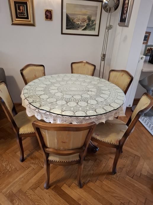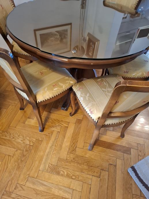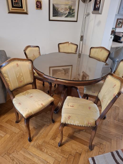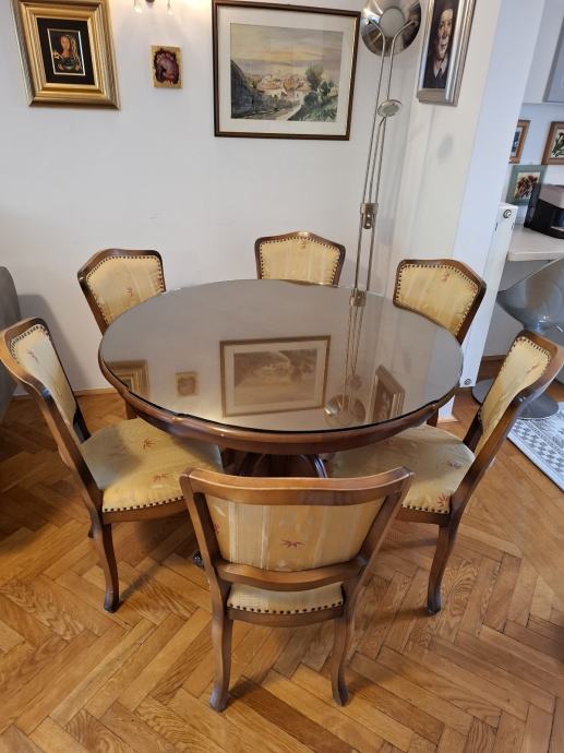 Stilska okrogla raztegljiva miza s steklom in 6 stoli - stilska masiva