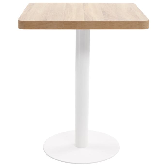 Pričarajte si romantično vzdušje z našo elegantno bistro mizo. Površina mize je izdelana iz mediapana z lesenim vzorcem ter podprta z jekleno nogo in podstavkom. Ta miza je preprosta za čiščenje z vlažno krpo. Uporabljajte jo kot posamezen kos pohištva v vaših notranjih prostorih, restavraciji, kavarni ali baru. Postavitev je preprosta.