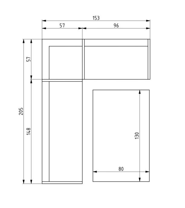DIMENZIJE SO :KOTNI ELEMENT 57X57 ,KRAKI 56,76,96,116,136,148 CM