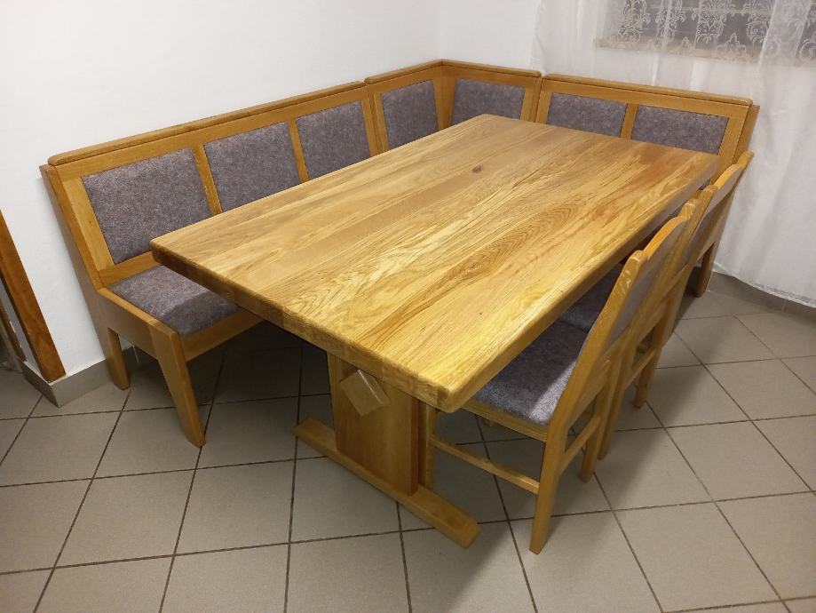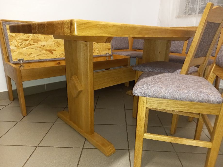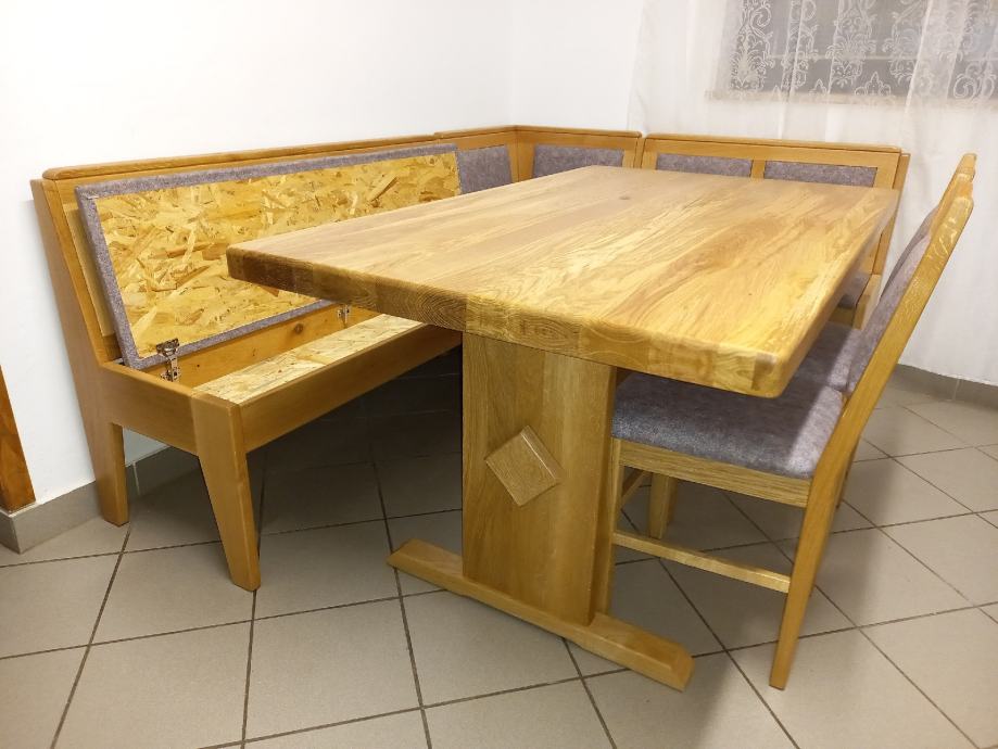 Jedilni kot,oblazinjen,s shranjevalnik predali 200×150cm,masiven hrast, 850€