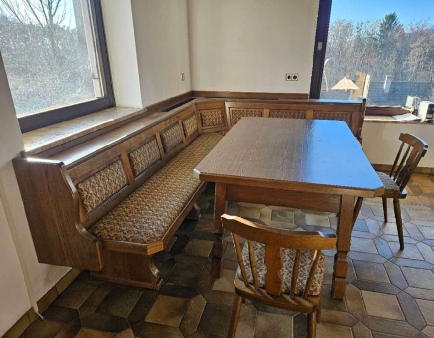 Prodam zelo lepo ohranjen veliki jedilni kot z masivno mizo in 2 stola.
