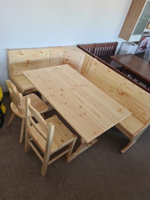 KOTNA KLOP BOR MASIVA KOMPLET Z MIZO IN 2 STOLA-DOBAVA TAKOJ