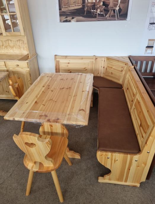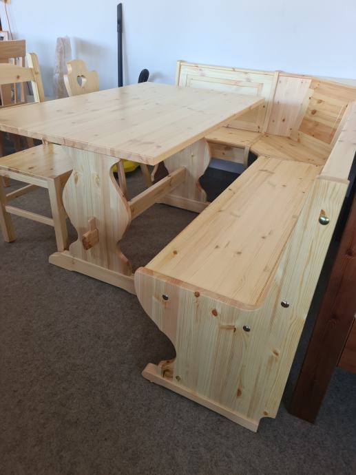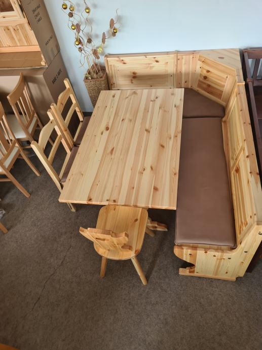 KOTNA KLOP BOR MASIVA KOMPLET Z MIZO IN 2 STOLA-DOBAVA TAKOJ