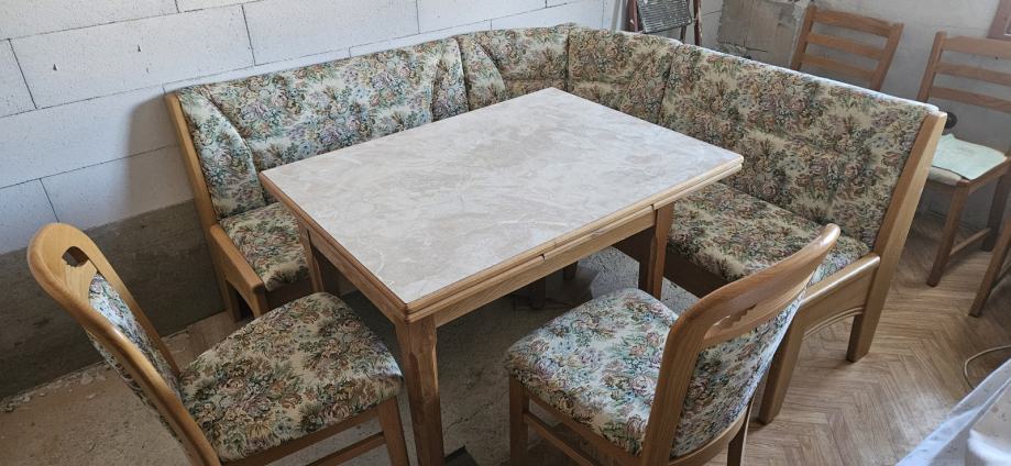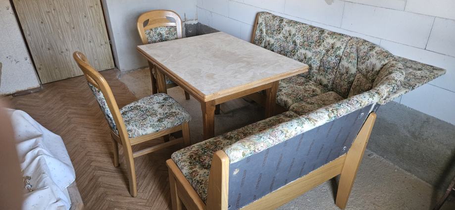 Prodam nov jedilni kot proizvajalca Murales model KLOP 9660, 2x nov stol Murales model STOL 5810 in zraven podarim masivno hrastovo mizo.