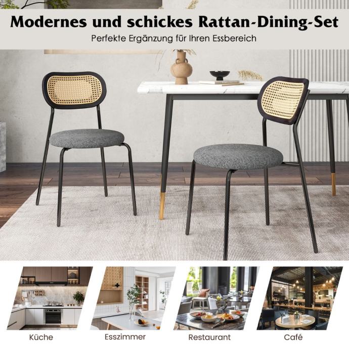 VEČNAMENSKA: Izvrstna garnitura jedilnih stolov iz ratana z elegantnim in elegantnim videzom doda sodoben pridih dekoraciji vašega bivalnega prostora. Primeren je za različne priložnosti, kot so jedilnice, kuhinje, restavracije, kavarne, sprejemi, banketi itd.