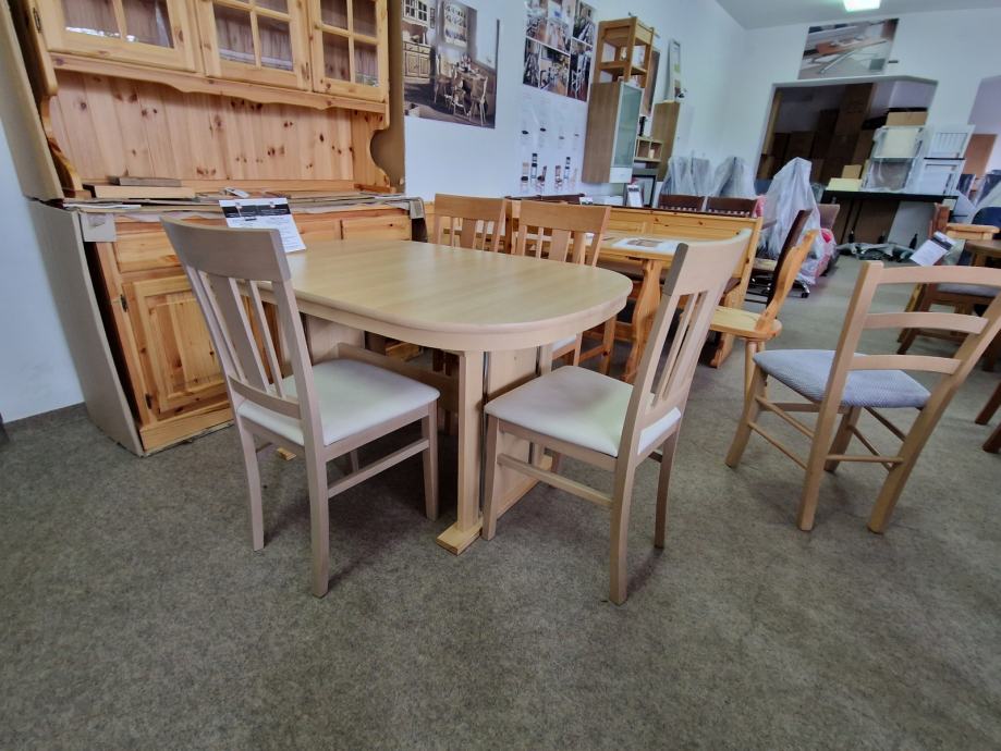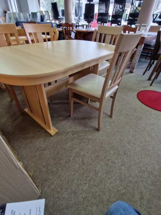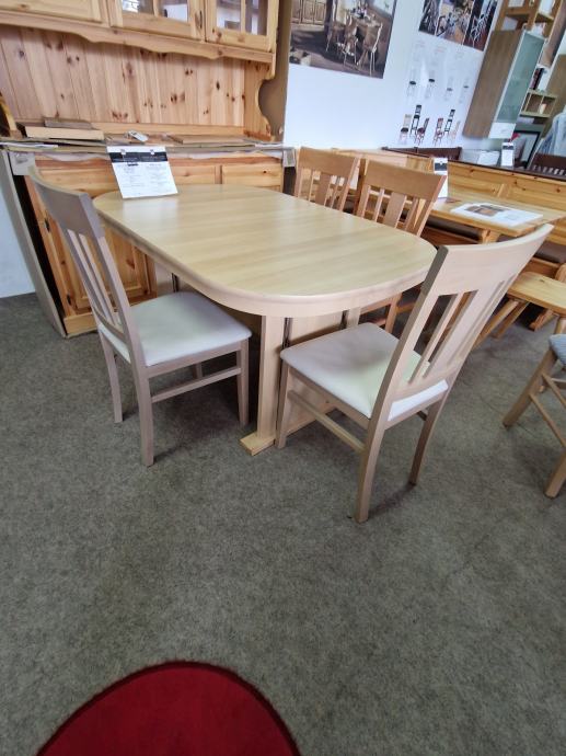 MIZA OVAL, DIMENZIJE 140X92+40 CM BUKEV + 6 STOLOV BUKEV-BEŠ