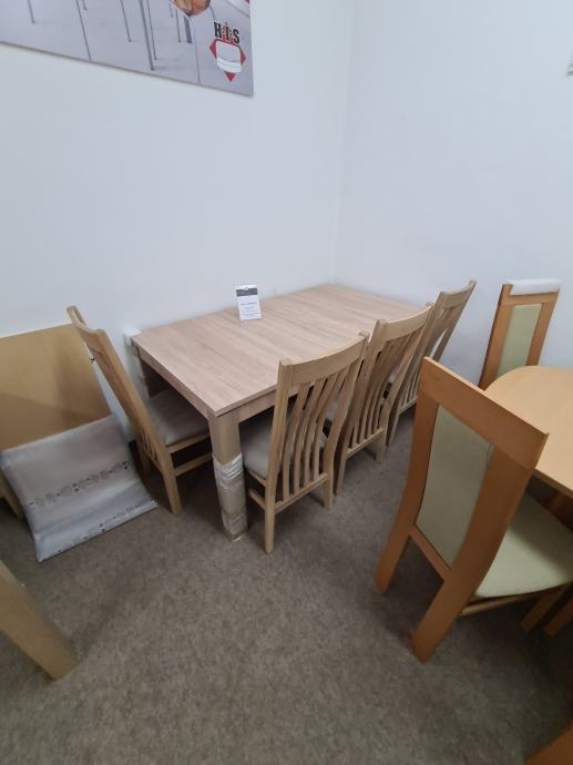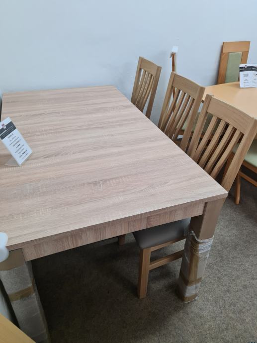 MIZA SONOMA 160X90 RAZTEGLJIVA +40 IN 6 KOM STOL MASIVA HRAST BARVA SONOMA
