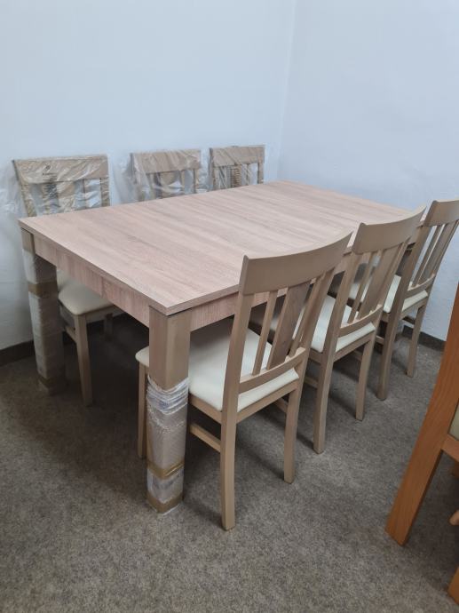 MIZA SONOMA 160X90 RAZTEGLJIVA +40 IN 6 KOM STOL MASIVA BUKEV BARVA SONOMA
