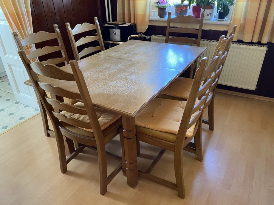 - 6 stolov iz masivnega oreha, oblazinjenih in z okrasnimi blazinami