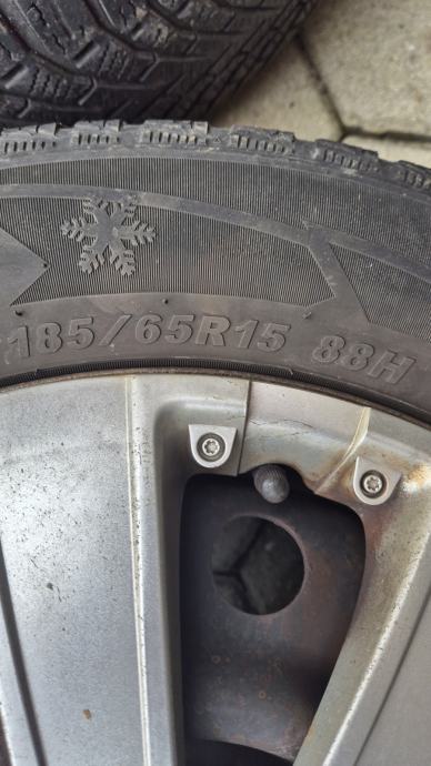 Jekllena platišča z zimskimi gumami in okrasnimi pokrovi za Kio ali Hyundai.