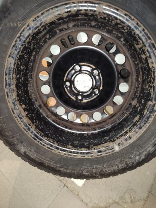 Prodam jeklena platišča z okrasnimi pokrovi za Opel Merivo, modelno leto 2011, zimskimi gumami KLEBER Krisalp HP2, dimenzij 195/65/R15. Gume so letnik december 2010, okrasne kape so zelo lepo ohranjene.