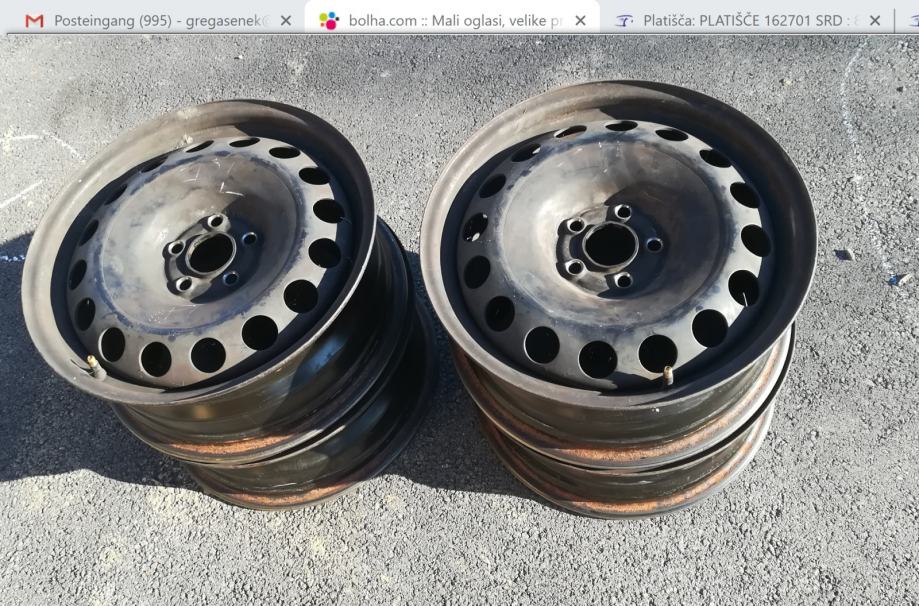 Prodam 4 kom Jeklenih platišč od VW Golf 4.
