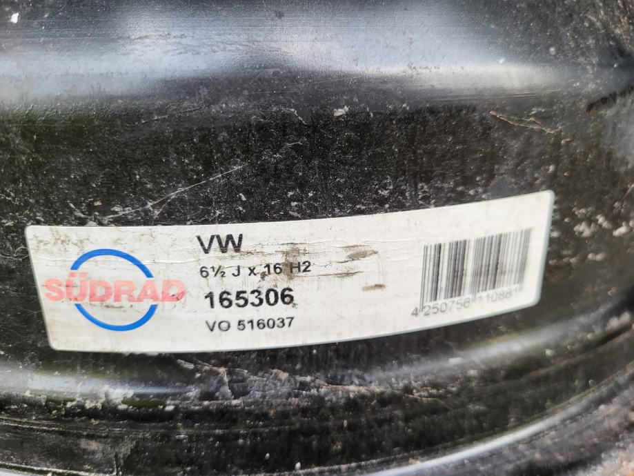 Prodam 3 kom železnih platišč za VW, velikost 16 col, širina 6.5J, razmak lukenj 5x112, ET 41. Primerno za rezervno kolo. Prodam tudi po kosu.30eur/kos