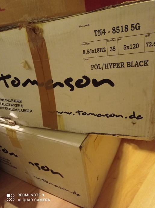 Prodam 2x Alu- Platišča Tomason 8,5 J x18 , 35 5x120, 72,6 , hyper Black, nova, zapakirana, lahko posamezno. Cena je za komad. Prevzem v Ljubljani.