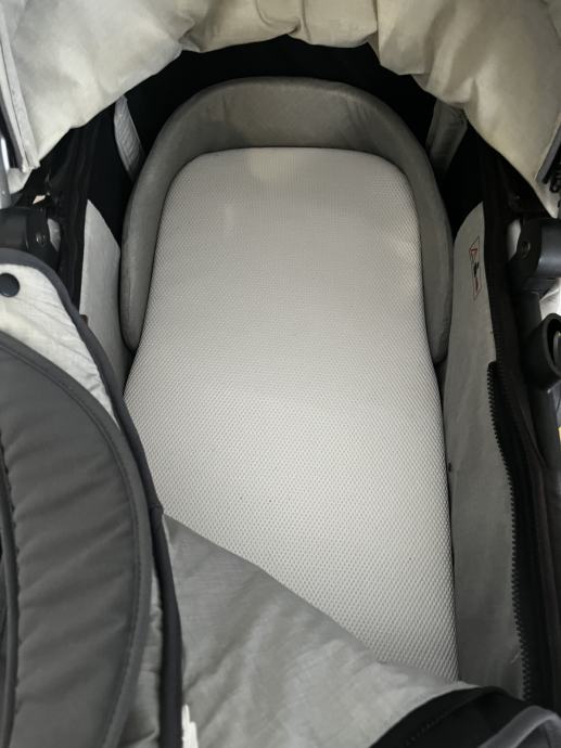 Podloga v košari kot nova(nikoli pobruhana ali polita). Voziček je očiščen in pripravljen na novega lastnika. Zraven brezplačno dodam original Joolz dežno prevleko in nastavke za lupinico Maxi Cosi.