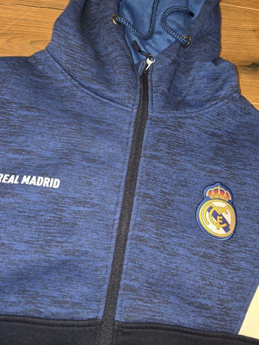 Prodajam malo rabljeno modro jopo Real Madrid z zadrgo in kapuco, odlična za vse navijače kraljevega kluba. Športna jopa ima prepoznaven klubski grb in je izjemno udobna za nošenje. Vrhunska kakovost materiala zagotavlja dolgotrajno uporabo in toplo udobje v hladnejših dneh. Velikost L