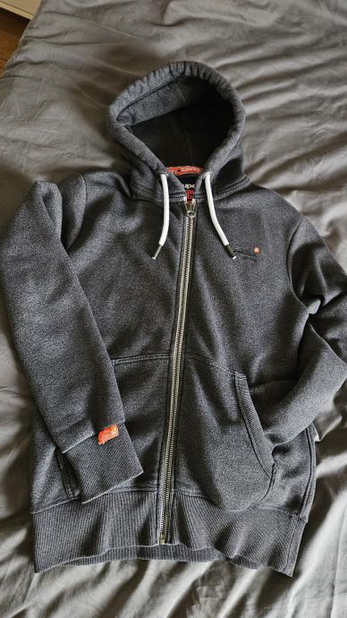 Prodajam rabljeno sivo Superdry jopico z zadrgo in kapuco (zip hoodie) v dobrem stanju. Jopica ima značilno Superdry etiketo in udoben kroj z žepi spredaj. Odlična za vsakdanje nošenje v hladnejših dneh. Velikost M